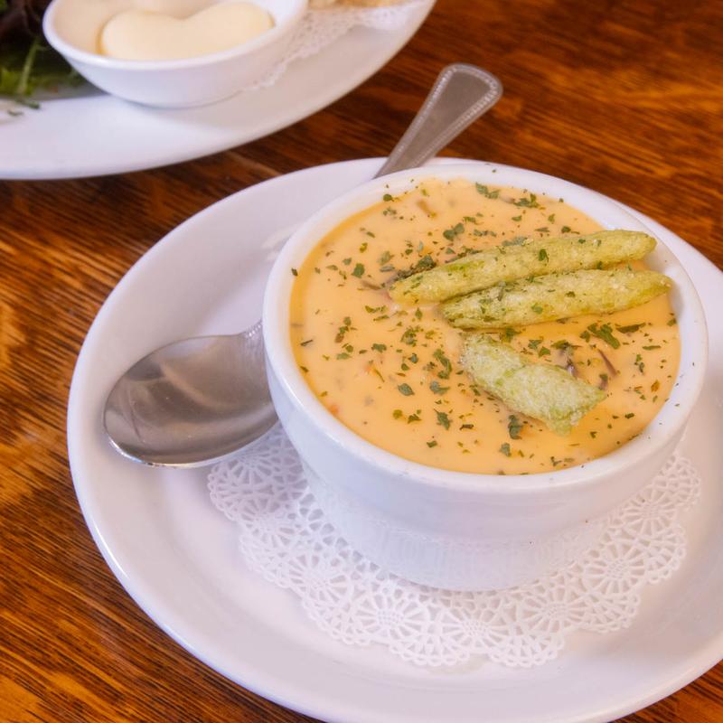 Cup - $13.00 | Bowl - $15.00 • Served with warm brioche roll and heart butter.